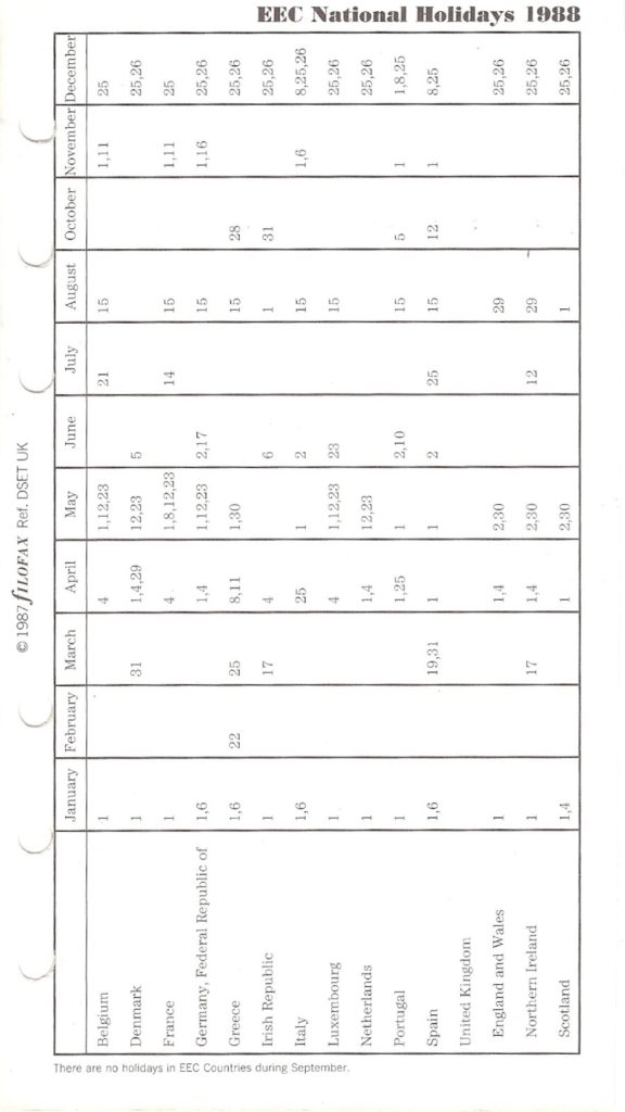 Previous image Next image EEC National Holidays 1988 (2) Share this: Share on Facebook (Opens in new window) Facebook Share on X (Opens in new window) X Share on Tumblr (Opens in new window) Tumblr Share on WhatsApp (Opens in new window) WhatsApp More Share on Pinterest (Opens in new window) Pinterest Print (Opens in new window) Print Like this:Like Loading...